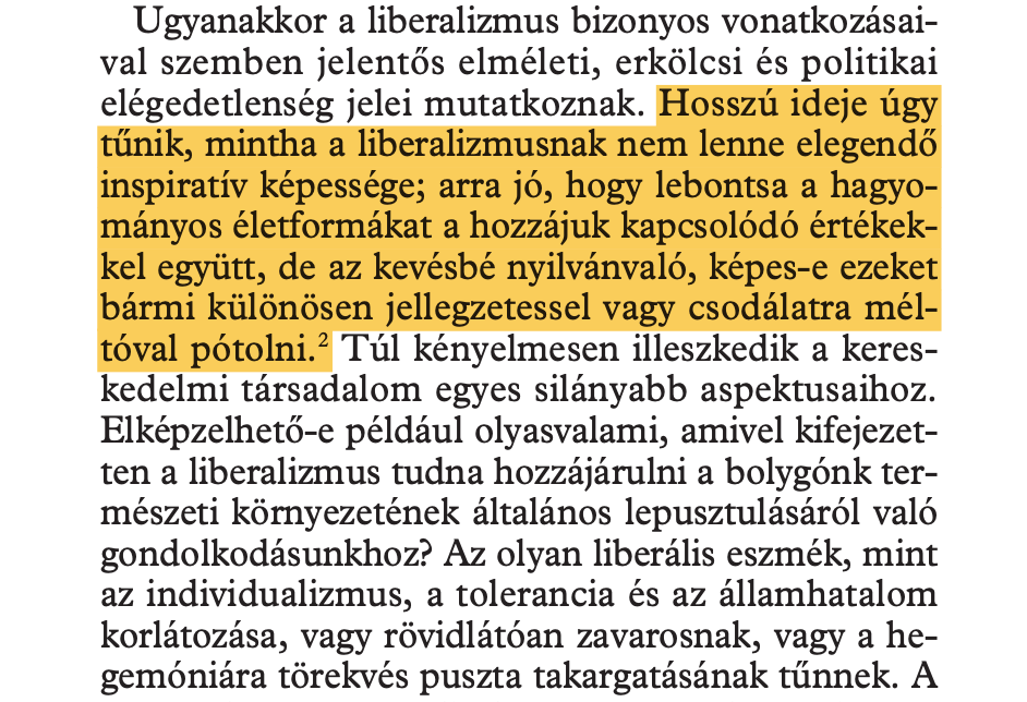 Az első kiindulási pontom, hogy a jövő politikai gondolkodása és elgondolása nem tud liberális keretben működni, nem lesz elegendő ajánlat a visszatérés egy klasszikus liberális működéshez, mégha részleteiben erre is van szükség.